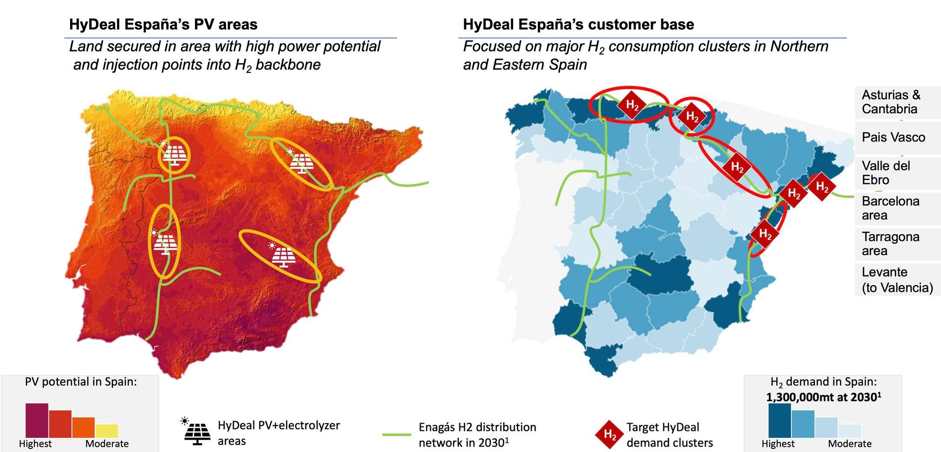 HyDeal España will supply 3 millon tons of green hydrogen over 20 years to major H2 consumption clusters in Northern and Eastern Spain